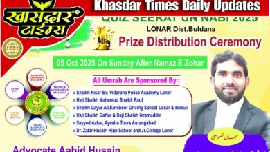 लोणार/फिरदोस खान पठाण लोणार में जिलास्तरीय सिरत-उन-नबी प्रश्नमंजुषा प्रतियोगिता का दूसरा और अंतिम चरण 5 अक्टूबर 2025 को डॉ. जाकिर…